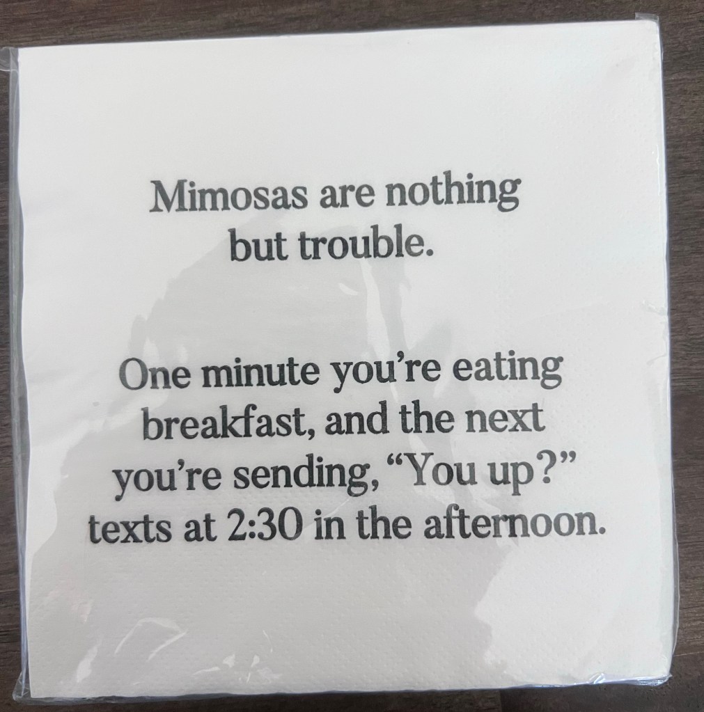 Glassware. Call me a snob, but heck, if I’m doing champagne aka Mimosas, you better put that in a REAL stemmed GLASS champagne glass. I do have the stemless ones and will occasionally use those instead but for the most part, I’m using the stems. I like the thin glass ones as well and yes, I’ve had a few break due to me waving my hands around while telling a story … unfortunately. A quick cleanup and we just move on. I have quite a few glasses now that are odd numbers for matching so whenever I see nice stemware, I’m picking up a 4 pack!