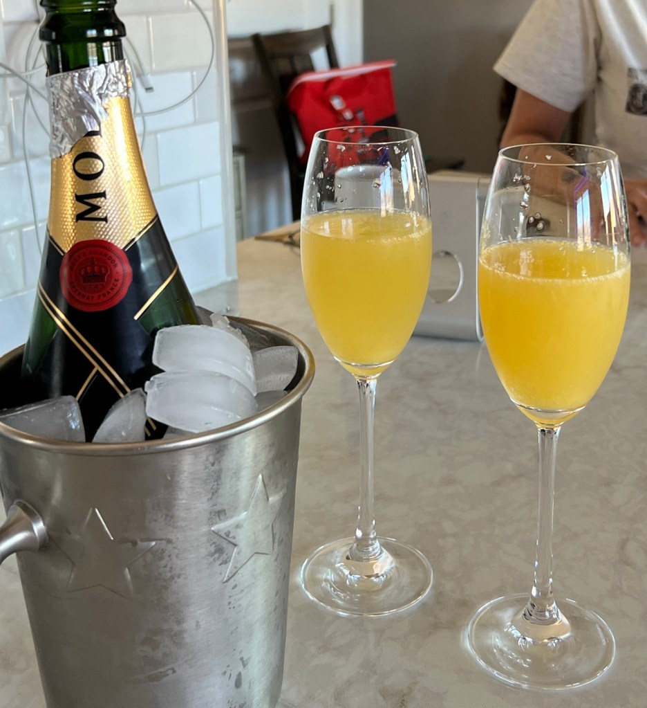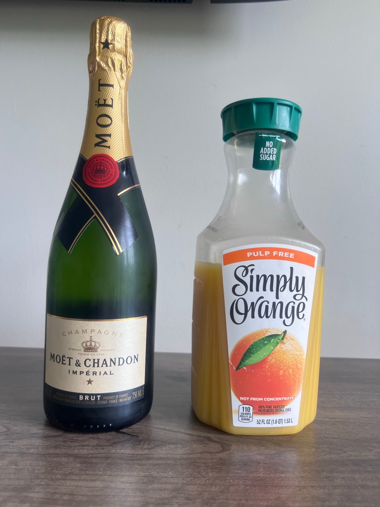Champagne. It makes a difference. Yes, most people use prosecco AND a lot of restaurants use sparkling wine. It’s just not the same. Once you use the real deal, you will have a hard time any other way. I use Moet 95% of the time. Yes, it’s expensive. It’s $40 to $45 at Costco which is why you will see me picking up 6 plus bottles when I’m there so I’m not spending an additional $10 at the local liquor store.