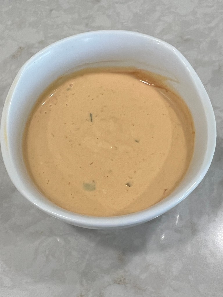 *add those to a small bowl and whisk til combined. Let chill in fridge while you make the rest of the food!