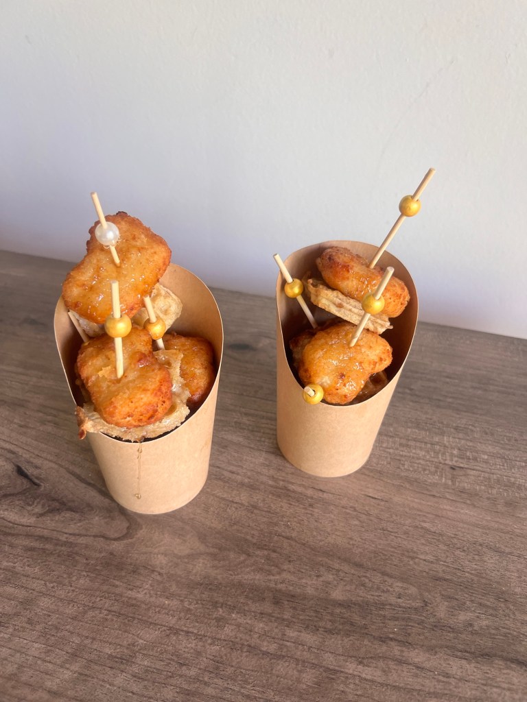 The family had the event catered and one of the things they were passing around was the Chicken and Waffles on little picks.