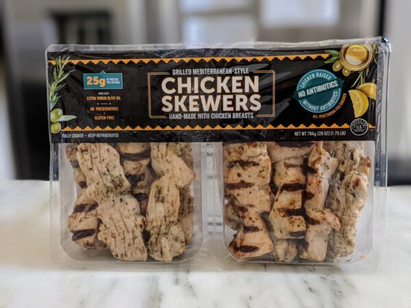 TIP: Those chicken skewers have about 7-9 skewers per compartment … I generally remove them from the package and place in freezer ziploc bags and just grab what’s needed when it’s time to cook!