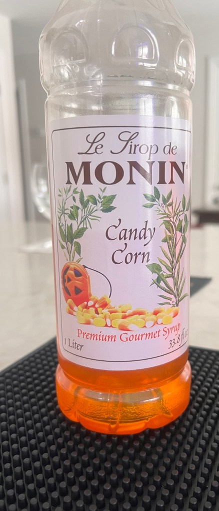 1 oz Monin Candy Corn Syrup (there may be other brands but this is just what I’ve seen)