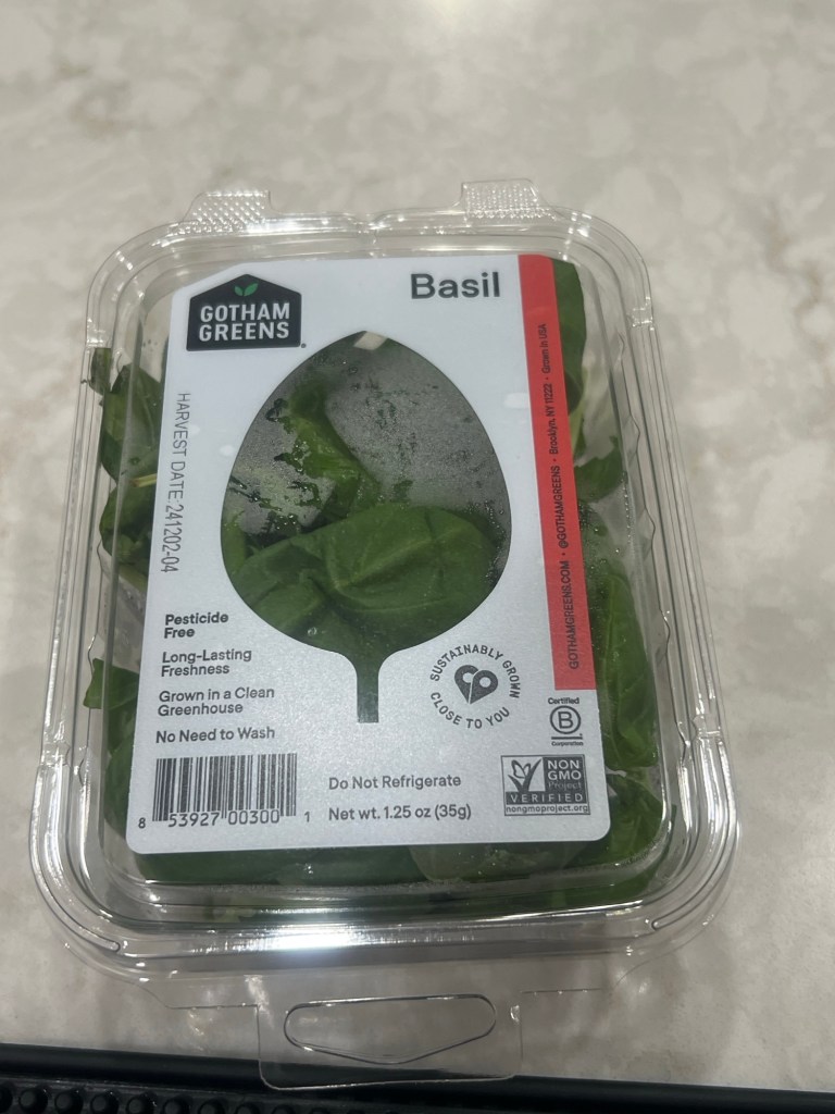 *Apparently basil season is OVER in the area here. Whenever I see fresh basil, be it a plant or these prepackaged containers, I grab one … can never have enough fresh basil in my opinion!